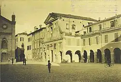The Sacred Hospice of Santa Maria Bianca was founded in 1432 by the Confraternity of the Misericordia dei Battuti, with the aim of "collecting and maintaining the exposed, housing pilgrims and caring for the poor, sick and insane". After a few years, the hospice was enlarged thanks to the considerable inheritance of 550 pounds of bolognini left in 1448 by the nobleman Francesco, son of Antonio Padella of the Manfredi family.[3] The following year, the regents of the Hospitale de Santa Maria Biancha received another inheritance with the will dated 15 March 1449 by Gerardo Padella (the last descendant of this noble and childless family), who donated all his possessions, with the clause that if it was decided to close the hospital all the money from the inheritance should be returned in full to the parish of San Michele arcangelo in Cividale. These bequests made it possible to erect a new building in Borgo Novo, next to the cathedral of Mirandola.[4] In 1473 a fire destroyed the historical archive.