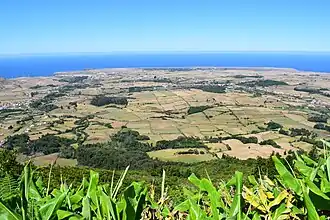 The agricultural fields of the western portion of the island of Santa Maria, location of the main settlement, Vila do Porto (as seen from Pico Alto)