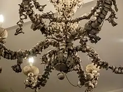 Detail of human bones chandelier in chamber of Santa Maria dell'Orazione e Morte