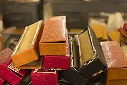 Santiniketan Leather Goods are leather products made in Santiniketan and surrounding villages near Kolkata, West Bengal, India. The material used is vegetable tanned leather with art work done by touch dyeing.[1] Its artistic leather bags are popular in foreign markets and are exported to many countries including Japan and the U.S.[2] They are generally made of E. I. Leather (East India Leather) from sheepskin and goatskin.[1][3]