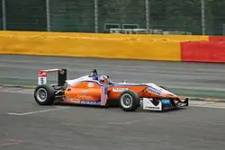 After confirmation of Ferrucci's entry into the 2016 GP3 Series, he became a test and reserve driver for the Haas F1 Team alongside Ferrari Driver Academy member and GP3 champion, Charles Leclerc.[10] Ferrucci got his first taste of F1 machinery when he tested for Haas at Silverstone after the British Grand Prix.[11] Haas retained Ferrucci as development driver for 2017 and 2018.[12][13]