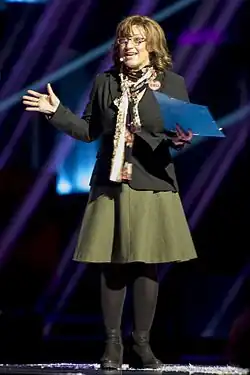 Sarah Dawn Finer (born 14 September 1981) is a Swedish singer, songwriter and actress. She is also known for playing Lynda Woodruff, a character created by Edward af Sillén to be a parody spokesperson of the European Broadcasting Union (EBU) in Melodifestivalen and the Eurovision Song Contest.[1]