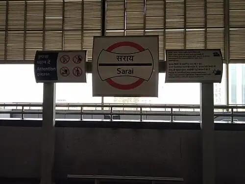 Sarai is an elevated station on the Violet Line of the Delhi Metro. It is located between Badarpur and NHPC Chowk station on the line 6 in Faridabad district of Haryana.[1]