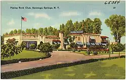 The Piping Rock Club was located on the north side of Union Avenue near Saratoga Lake. Meyer Lansky, Frank Costello—operator of New York's Copacabana nightclub—and Joe Adonis opened the Piping Rock Club in the early 1930s. At one time, the Piping Rock Club had "12 roulette wheels, three craps tables, one card table and a bird cage.[7] The Piping Rock burned in 1954 under suspicious circumstances.[10]