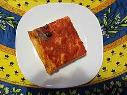 Sardenaira (also known as pissalandrea, pizza all'Andrea,[1] piscialandrea, pizzalandrea,[2] pissadella[3] or sardenaira[4]) is a pizza dish, without cheese, from the Liguria region of Italy.[5] It is very similar to the pissaladière.[5][6][7][8] Although termed a pizza, some consider it more akin to a focaccia.[8]