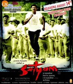Satyam (transl. Truth)[a] is a 2008 Indian action film written and directed by A. Rajasekhar in his debut. The film was simultaneously shot in Tamil and Telugu titled as Salute, with a slightly different supporting cast. The film stars Vishal, Upendra and Nayanthara. It was produced by Vikram Krishna, Vishal's brother. The score and soundtrack were composed by Harris Jayaraj.
