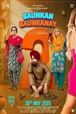 Saunkan Saunkanay 2 is a 2025 Indian Punjabi-language comedy-drama film directed by Smeep Kang and written by Amberdeep Singh. It was released theatrically on 30 May 2025 and it is a sequel to the 2022 film Saunkan Saunkne.[1] The film features Ammy Virk, Sargun Mehta, Nimrat Khaira, and Nirmal Rishi reprising their roles.[2] Produced by Ravi Dubey, Jatin Sethi, and others under the banners Dreamiyata Entertainment and Naad Sstudios, the film continues the domestic comedy theme introduced in the original.[3]