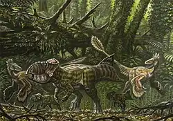 - ^ Brinkman, Donald B.; Ryan, Michael J.; Eberth, David A. (1998). "The Paleogeographic and Stratigraphic Distribution of Ceratopsids (Ornithischia) in the Upper Judith River Group of Western Canada". PALAIOS. 13 (2): 160–169. Bibcode:1998Palai..13..160B. doi:10.2307/3515487. ISSN 0883-1351. JSTOR 3515487.