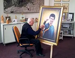 Sava Stojkov finishing his portrait of Novak Djokovic