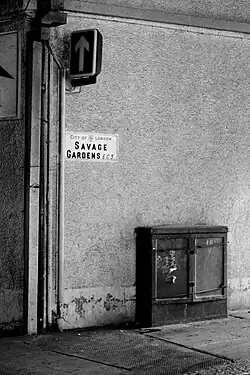 Savage Gardens is a minor street in the City of London, connecting Crutched Friars in the north to Trinity Square in the south, crossing Pepys Street. It was part-pedestrianised in 2011, with the carriageway remaining between Pepys Street and Trinity Square.