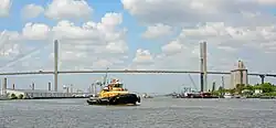 Between 1946 and 1985, the U.S. Army Corps of Engineers built three major dams on the Savannah for hydroelectricity, flood control, and navigation. The J. Strom Thurmond Dam (1954), the Hartwell Dam (1962), and the Richard B. Russell Dam (1985) and their reservoirs combine in order to form over 120 miles (190 km) of lakes.[13] In December 1986, an oil spill caused by an oil tanker docked at the port of Savannah resulted in approximately 500,000 US gallons (1,900,000 L) of fuel oil leaking into the river.
