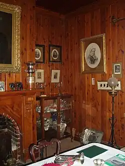 The rifle heritage of William Sloane (grandfather of 2012 occupant) consisting of awards, medals, insignia, rifles, trophies, letters and diaries. William competed at the international Bisley competition in 1897 1898, then was part of the Australian team in 1902. He also represented his country in New Zealand competitions. The team was victorious in 1897 and 1902. He was instrumental in modernizing the Victorian Defences with the appropriate rifle. His part in riflemen history has been documented in "The Bisley Boys" by Andrew Kilsby, 2008.[8] These objects are on display in the 1886 timber panelled homestead dining room.[4][1]