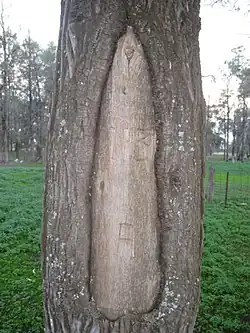 The Bangerang people used the River Murray as a thoroughfare and were famous for their bark canoes: the banks of the Murray today still have a relatively large number of older trees with the wood exposed where bark for canoes was cut out in the early nineteenth century or before [scar trees]. As late as 1848 the squatter E. M. Curr travelled on the river with an Aboriginal guide in a 6-metre-long (20 ft) canoe with a traditional fire "burning on a hearth of clay in the bows" to grill fish or duck en route.[1][2]