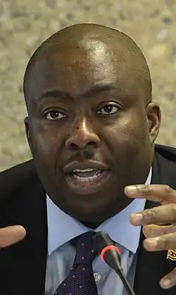 Saviour Kasukuwere (born 23 September 1970) is a Zimbabwean politician who served in the government of Zimbabwe as Minister of Local Government, Rural Development and National Housing between October and November 2017. He was also the ZANU–PF party's national political commissar until December 2017. Before that he was Minister of Youth Development, Indigenisation and Empowerment, and Minister of the Environment, Water and Climate. In October 2020, the Zimbabwe government sought Kasukuwere's extradition after issuing a warrant for his arrest.[1] It was revealed that Kasukuwere was among loyalists of former President Robert Mugabe who fled to South Africa before their criminal trials could be completed.[1]