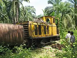 Railway transport of the palm fruits from the plantation to the factory was abandoned in the early 2010s. Meanwhile, the tracks are lifted. One of the last active locomotives was still parked besides the former tracks in 2012.[3]