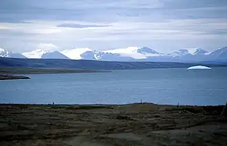 ![]() Sawtooth Range; in front: Slidre Fiord and Fosheim Peninsula | |