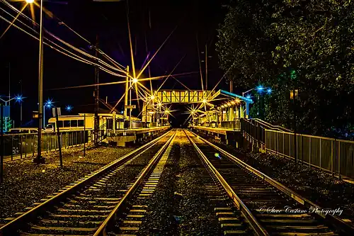 A renovation project in 1998–1999 installed a pedestrian overpass and sheltered high-level platforms.[4]