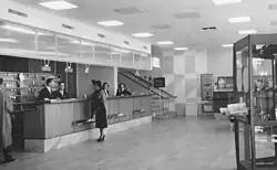 The hotel was built from 1948 to 1951 in place of the Stora Teatern which had been built in 1916 as one of Stockholm's largest film theatres. The hotel was one of the interesting commercial designs of the 1950s designed as modernist architecture. The building was built by Kommunal Hotell AB. The building was designed by Georg Varhelyi and Carl-Axel Acking.[2] Acking's design was classy but raw, for example conservation of space was done with narrow rooms and using couch beds as extra beds.