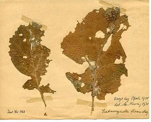 19. ^ Martin NA (2014). "Scaptomyza (Bunostoma) flavella (Diptera: Drosophilidae) and the evolution of leaf mining". The Weta. 47: 8–12.