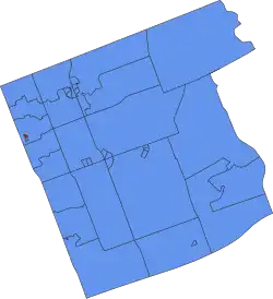 In 1987 the boundary was altered again. The eastern border was shifted east to the CNR right-of-way east of Kennedy Road. The southern border became Highway 401 from the railway to the city limits. The northern and eastern borders remained the same.[4][5]