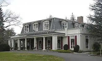Scarsdale Woman's Club is a historic women's club located at Scarsdale, Westchester County, New York, United States. It was built in 1858 and expanded and remodeled in 1872 in the Second Empire style. It was again expanded and remodeled in 1941 by Hobart Upjohn. The former residence is a 1+1⁄2-story wood-frame building, clad in stucco, with a prominent mansard roof covered in red and blue hexagonal slate tiles. It features a five-bay open front porch supported by square and Doric order columns. It was acquired by the Scarsdale Woman's Club in 1928 for use as a clubhouse.[2]