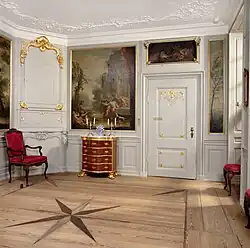 Schäffer's rich interior Rococo decorations from his house are now on display in the National Museum.[6][7]
