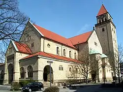 The area's largest churches are the Lutheran Lutherkirche (Luther Church) – built in 1909 and retaining all its Jugendstil furnishings – the Lutheran Lukaskirche (Luke Church) and the Catholic Kirche St. Joseph (St. Joseph's Church), which was consecrated in 1917. The former Heilige Familie (Holy Family) Catholic parish church was converted into a columbarium church from 2009 to 2011. Furthermore, the parish hall of the Reformed Evangelical Friedenskirche (Church of Peace) is located in the district; currently it is used as a youth church.