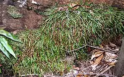 The generic name Schizaea is from the Greek, meaning "to cleave or split", rupestris means near rocks.[5] It first appeared in scientific literature in the year 1810, in the Prodromus Florae Novae Hollandiae et Insulae Van Diemen, published by the prolific Scottish botanist, Robert Brown.[6]