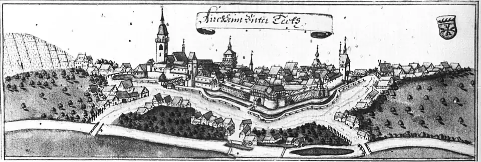 On his return from exile, Duke Ulrich of Württemberg ordered the construction of seven fortresses across the Duchy of Württemberg in order to better protect its territory.[1] Those fortresses were to be the castles of Hohentübingen, Hohenurach, Hohenneuffen, Hohenasperg and Hohentwiel, and the towns of Schorndorf and Kirchheim unter Teck.[2]