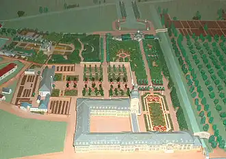 In 1720, Josep Charles (1694-1729), hereditary prince of Sulzbach constructed a summer palace in Oggersheim.[1][2][3] In 1729, a baroque Loreto chapel was added in the palace gardens.[3] When prince Joseph Charles passed away in 1729, the palace was not used for 22 years until 1752, when Count palatine Frederick Michael of Zweibrücken-Birkenfeld (1724-1767) turned Oggersheim into his summer residence.[1][2] With help of the architect Nicolas de Pigage (1723-1796), he fully reconstructed the palace between 1752 and 1757.[1][2] In addition, a large baroque garden in French style was created, including various pavilions, bath houses as well as a large orangery.[1][2][3]