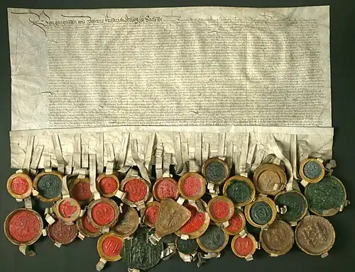 Although created for religious motives soon after the start of the Reformation, its members later came to have the intention that the League would replace the Holy Roman Empire as their focus of political allegiance.[2]