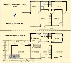 1. ^ In various publications such as the Town of Cambridge Inventory of Heritage Places[1] and internet websites the house is referred to by the name of the builder and first owner Siegfried and Jutta Schmidt-Lademann.