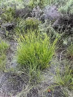 Schoenus comparoides is a species in family Cyperaceae, tribe Schoeneae.[1] Other notable genera in tribe Schoeneae include Lepidosperma, Oreobolus, Costularia, Tetraria and Gahnia.[4][5] The most closely related species to S. comparoides are other southern African Schoenus species in the Schoenus compar – Schoenus pictus and allies group.[2]