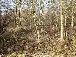 Scholes Coppice (also called Scholes Wood) in an area of ancient woodland located to the north-west of Kimberworth in the Metropolitan Borough of Rotherham in South Yorkshire, England. It was once part of the Kimberworth Deer Park, and contains a number of archaeological sites, the most significant of which is thought to be an Iron Age hill fort.[1][2] Known as Caesar's Camp or Castle Holmes, this Scheduled Ancient Monument was partially excavated in the 1990s. It consists of an outer bank 2–5 metres high and 15 metres wide that may have been topped by a wooden palisade, which is paralleled by a 15-metre-wide ditch. There is no obvious entrance to the site.