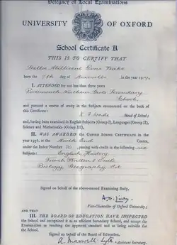1. ^ School Certificate at History Learning Site. Retrieved 6 September 2012