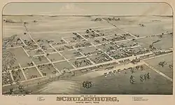 In 1873, the Galveston, Harris and San Antonio Railroad bought land in the area. They built a depot on the portion formerly owned by Louis Schulenburg, and named it after him.[6][7] The first train arrived on New Year's Eve of 1873, and the town was formally incorporated on May 24, 1875.