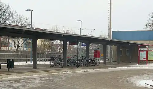Schwedt (Oder) station is, along with the halt of Schwedt (Oder) Mitte, a station in the town of Schwedt in the Uckermark district of the German state of Brandenburg. It is heritage listed along with the goods sheds, the locomotive shed, the water tower and the water crane.[4]