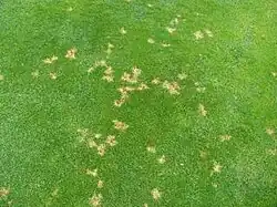 Dollar spot is a fungal disease of turfgrass caused by the four species in the genus Clarireedia, in the family Rutstroemiaceae.[1] The pathogen blights leaf tissues but does not affect turf grass roots or crowns. There is evidence that a fungal mycotoxin produced by the pathogen may cause root damage, including necrosis of the apical meristem in creeping bentgrass (Agrostis stolonifera).[2] However, the importance of this toxin is unknown and its effects are not considered a direct symptom of dollar spot. The disease is a common concern on golf courses on intensely managed putting greens, fairways and bowling greens. It is also common on less rigorously maintained lawns and recreational fields.[2] Disease symptoms commonly result in poor turf quality and appearance.[3] The disease occurs from late spring through late fall, but is most active under conditions of high humidity and warm daytime temperatures 59–86 °F (15–30 °C) and cool nights in the spring, early summer and fall. The disease infects by producing a mycelium, which can be spread mechanically from one area to another.[4]