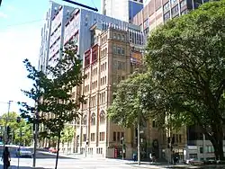 By the 1990s, there were questions over the building's future, and its owner, the Presbyterian Church of New South Wales, initiated a series of redevelopment proposals.[14] By 1998, when the last tenants were evicted, it was home to an 80-person congregation, which was forced to move to a church in Devonshire Street, artists and community groups, who were confined to the first two floors, with the upper storeys having been closed for some years. By the time of its eventual redevelopment, it had undergone several years of disuse and had been deconsecrated. In 1992, the church proposed to immediately demolish the building and build an 18-storey office complex, which met with strong Sydney City Council opposition and a trade union "green ban" and eventually did not proceed. In 1995, it was proposed to develop 13-storey office complex behind the existing facade, which collapsed when the intended tenant, the private training institute Australian Academy, withdrew from the proposal. Proposals continued throughout the remainder of the 1990s. In 2001, the Presbyterian Church of New South Wales sold the then-disused church site to a subsidiary of developer Westpoint Corporation, retaining a strata title over the existing church building, which was to be retained in any redevelopment. It was eventually redeveloped in 2005, with 148 apartments built on top of the existing church. The restoration, funded by the redevelopment, faced challenges due to the building's disused state: contractors responsible for the renovation described "leaky ceilings, crumbling sandstone and damaged timber and metalwork", and having to sift through the contents of a floor "strewn with rubbish", among other issues. The restoration won the 2006 MBA Construction Award for restoration of an historic building up to $5 million and the 2006 RAIA NSW Multiple Housing Award.[15][16][17][18][19][10][20][21][22]