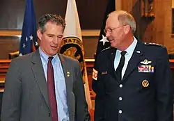 He was awarded the Army Commendation Medal for meritorious service in preparing for troops mobilization for Operation Noble Eagle (the mobilization of National Guard and U.S. Army Reserve personnel to provide security on military installations, airports, and other potential homeland targets) shortly after the September 11, 2001 attacks, and later for mobilization support for Operation Enduring Freedom and Operation Iraqi Freedom of the Iraq War.[23][28] He credits his military experience with causing him to focus on veteran's issues as well as issues of war and peace.[27] He has served on the Senate Committee on Veterans' Affairs, the Hidden Wounds of War Commission, and the Governor's Task Force on Returning Veterans during his career as a legislator.[27]