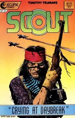 Scout is an American dystopian comic book series created and written by Timothy Truman, and first published by Eclipse Comics in 1985. The story stars a Native American Apache named Emanuel Santana. The setting of the series is a future United States which has become a Third World country.