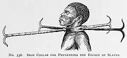 Iron collar to prevent slaves from escaping. Also a form of torture.