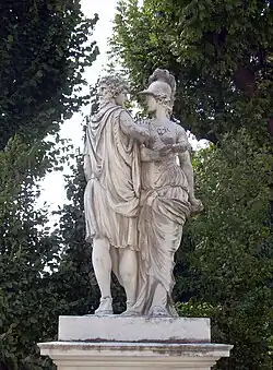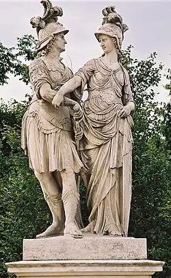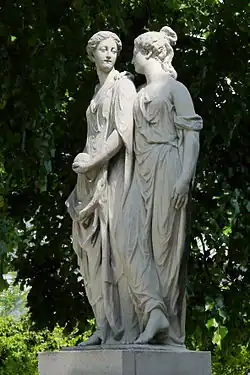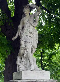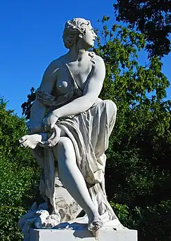 51 Diana and Meleager Johann Wilhelm Beyer The statues are located in the Hietzinger Privy Gardens, the private garden of emperor Franz Josephs.