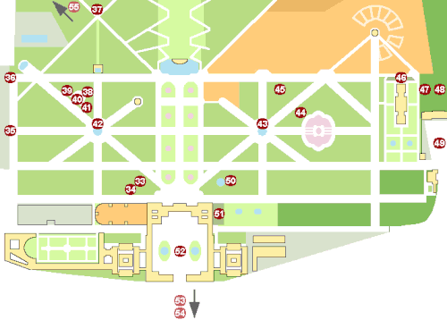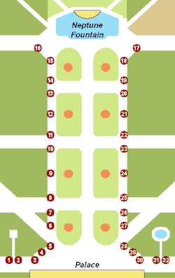 Great Parterre showing the locations of 32 over life-size sculptures that line both sides
