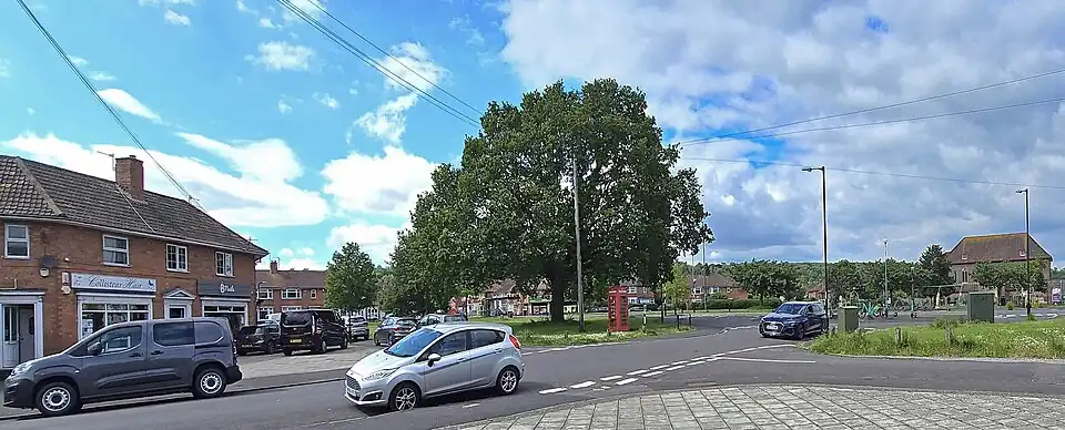 Dr Christopher Addison, the minister responsible for what were generally called the Addison Acts, visited Sea Mills on 4 June 1919 to cut the first sod on the new council estate and a commemorative tree was planted.[17] Addison's Oak still stands on Sea Mills Square, actually an elongated semicircle at the centre of the garden suburb, and was a runner-up in the 2019 Woodland Trust tree of the year competition.[18] "The Square" was to have been a quadrangle, bisected by Shirehampton Road, but the initial plan was modified to follow a celebrated design by the chief architect of the national housing scheme, Raymond Unwin, who had ultimate responsibility for approving the Sea Mills layout. In the course of development, the plan was further modified to be less dense and formal, with fewer right-angles and squares and more open spaces, to follow contour lines, and to create a more coherent northern framework.[19]