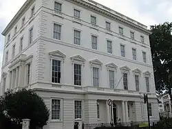 Dating from 1842, Sefton House was designed by Philip Hardwick to meet the requirements of the 3rd Earl of Sefton.[2] The town house, with its railings and gate piers, is listed Grade II* for architectural merit.[3] The 3rd and 4th Earls of Sefton enjoyed using it as their London town house; the 5th earl, being an invalid, could not do so and after he died childless in 1901,[4] its lease was sold to William Tebb.