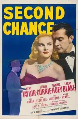 Second Chance is a 1947 American film noir crime film directed by James Tinling and written by Arnold Belgard. The film stars Kent Taylor, Louise Currie, Dennis Hoey, Larry J. Blake, Ann Doran and John Eldredge. The film was released on July 18, 1947, by 20th Century Fox.[1][2][3]