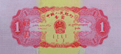 The second series of Renminbi banknotes was introduced on March 1, 1955 (but dated 1953). Together with the introduction of the second series, the decimal point was moved 4 places to the left. As a result, one first series ¥10,000 note is equivalent to one second series ¥1 note.