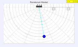 For a simple gravity pendulum — a point mass on a weightless string of length swinging with an infinitesimally small amplitude, without resistance — the period of the pendulum will be:[2]: 2.6