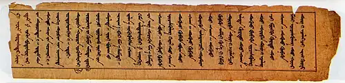 Scholars of Mongolian history consider the text hugely important for the wealth of information it contains on the ethnography, language, literature and varied aspects of the Mongol culture.[5][6] In terms of its value to the field of linguistic studies, it is considered unique among the Mongol texts as an example free from the influence of Buddhism prevalent in later texts. It is especially valued for its vivid and realistic depictions of daily tribal life and organization of Mongol civilization in the 12th and 13th centuries, complementing other primary sources available in the Persian and Chinese languages.[7]